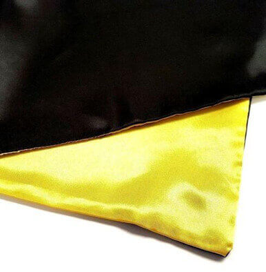 The cape is made from satin, it is double lined and has a velcro closure